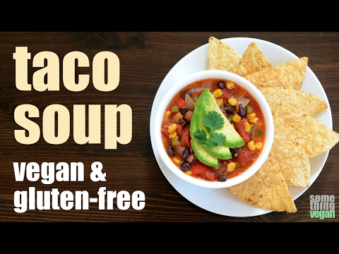 taco soup (vegan & gluten-free) Something Vegan - Taco Soup Gluten Free - RECIPE 1 Tbsp. oil (vegetable or canola—you could also use water to make this oil-free) 1 medium onion, diced 1 red pepper, diced 1 jalapeño pepper, ...